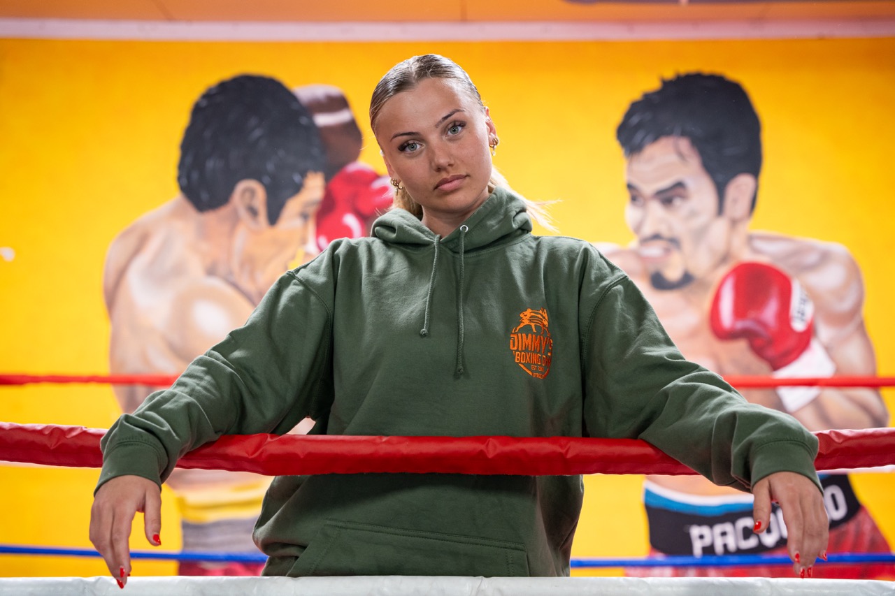 Echte Jimmy’s Gym hoodie, 80% katoen, 20% polyester met unisex fit. Logo op de linkerborst en achterzijde zijn geborduurd in oranje.
